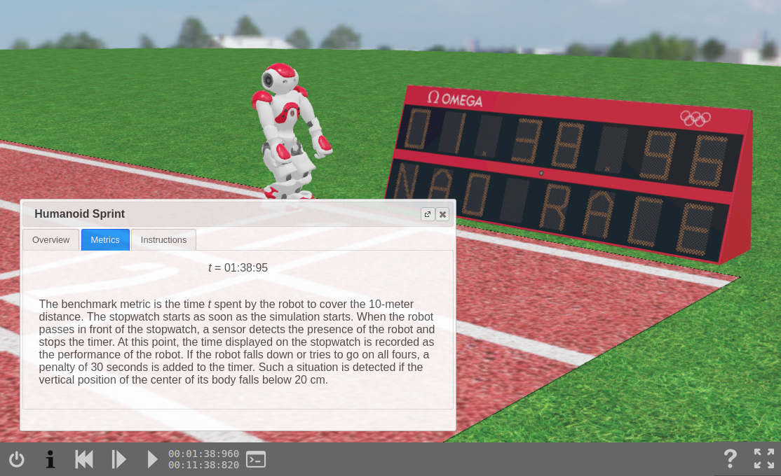 This is an editor window where it is possible to modify the robot controller programs in order to possibly improve the behavior of the robot. It can be open from the robot context menu, popped up when clicking with the right mouse button on the robot in the 3D scene, and it will automatically contains all the editable source files.